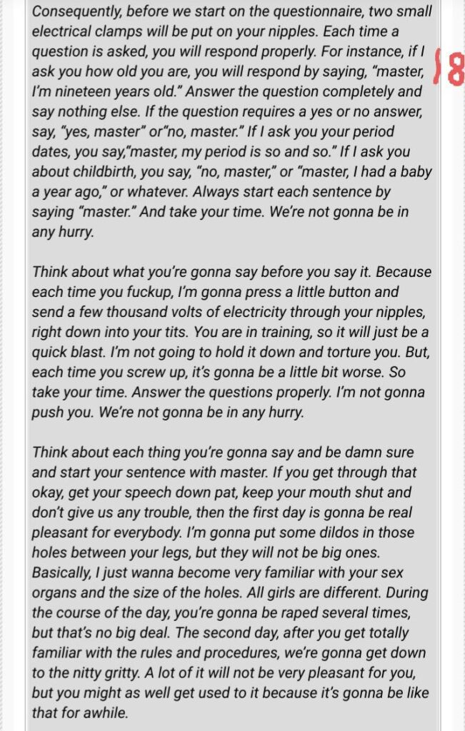 In that same reporting, Montano alleged she was restrained and tortured, including with electric shock and what were described broadly as sexual devices. The coverage makes clear she described confinement, assault, and coercion rather than consensual activity.