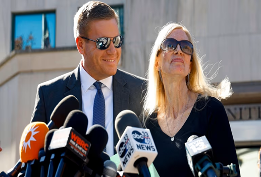 Beth and her son Matt Holloway speak to the press, Photo by AP/Butch Dill