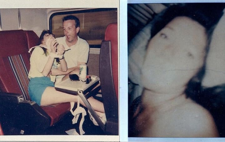 But the third photograph wasn’t as convincing. Found in February 1990, it showed a woman loosely bound in gauze, wearing large black-framed eyeglasses, with her eyes covered in gauze. There is a man sitting next to her on the passenger seat of an Amtrak train.