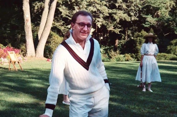 In New York, he met Sandra Boss at a costume party themed to the board game Clue. He dressed as Professor Plum, and she came as Miss Scarlet, which made for a memorable first impression.